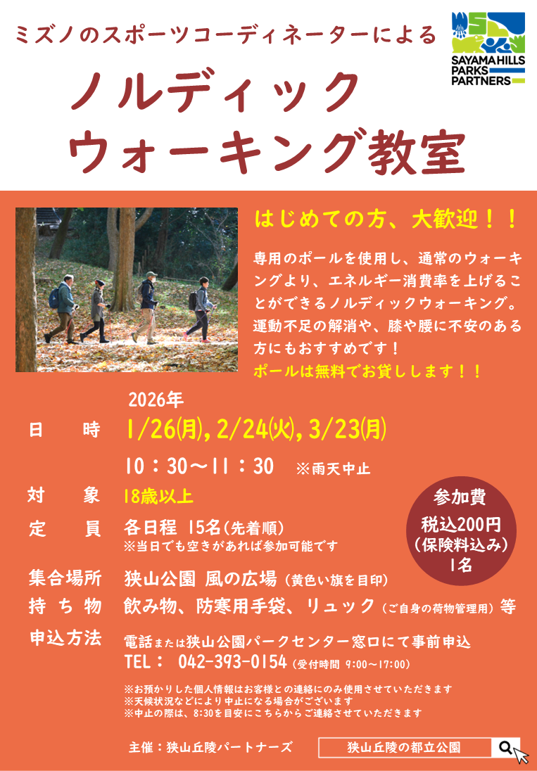 1/26(月)【狭山公園】ノルディックウォーキング教室